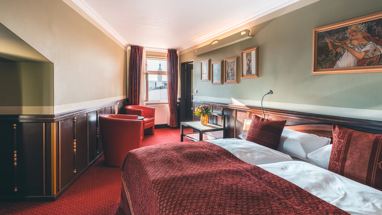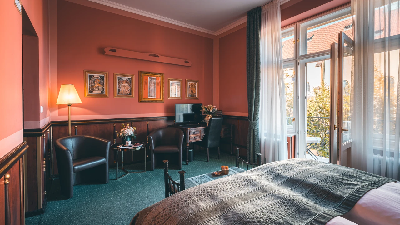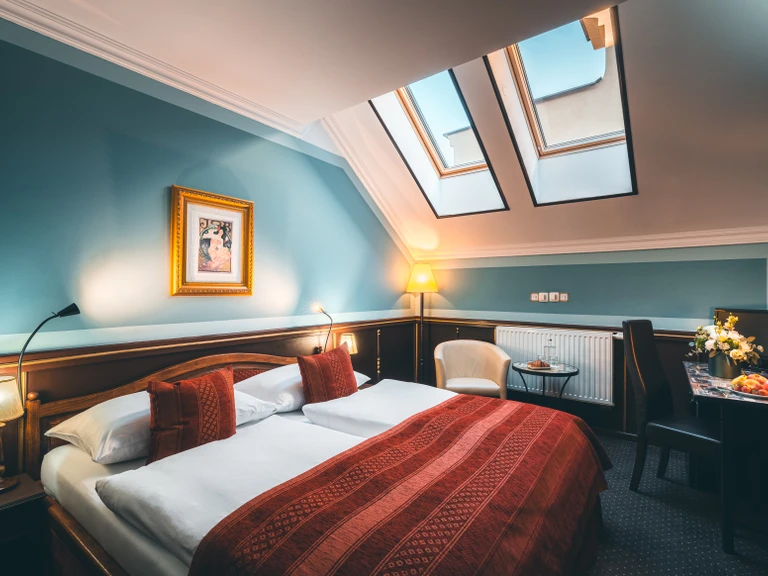Welcome to the Hotel Haštal Prague Old Town gallery. Here, you can explore photos of our elegant rooms, cozy interiors, and authentic details that make every stay memorable. In addition, you’ll find glimpses of our stylish bar, breakfast area, and the charming streets of Prague nearby. Each image tells a part of our story — blending history, comfort, and design. So, take a moment to browse and imagine your next visit with us.